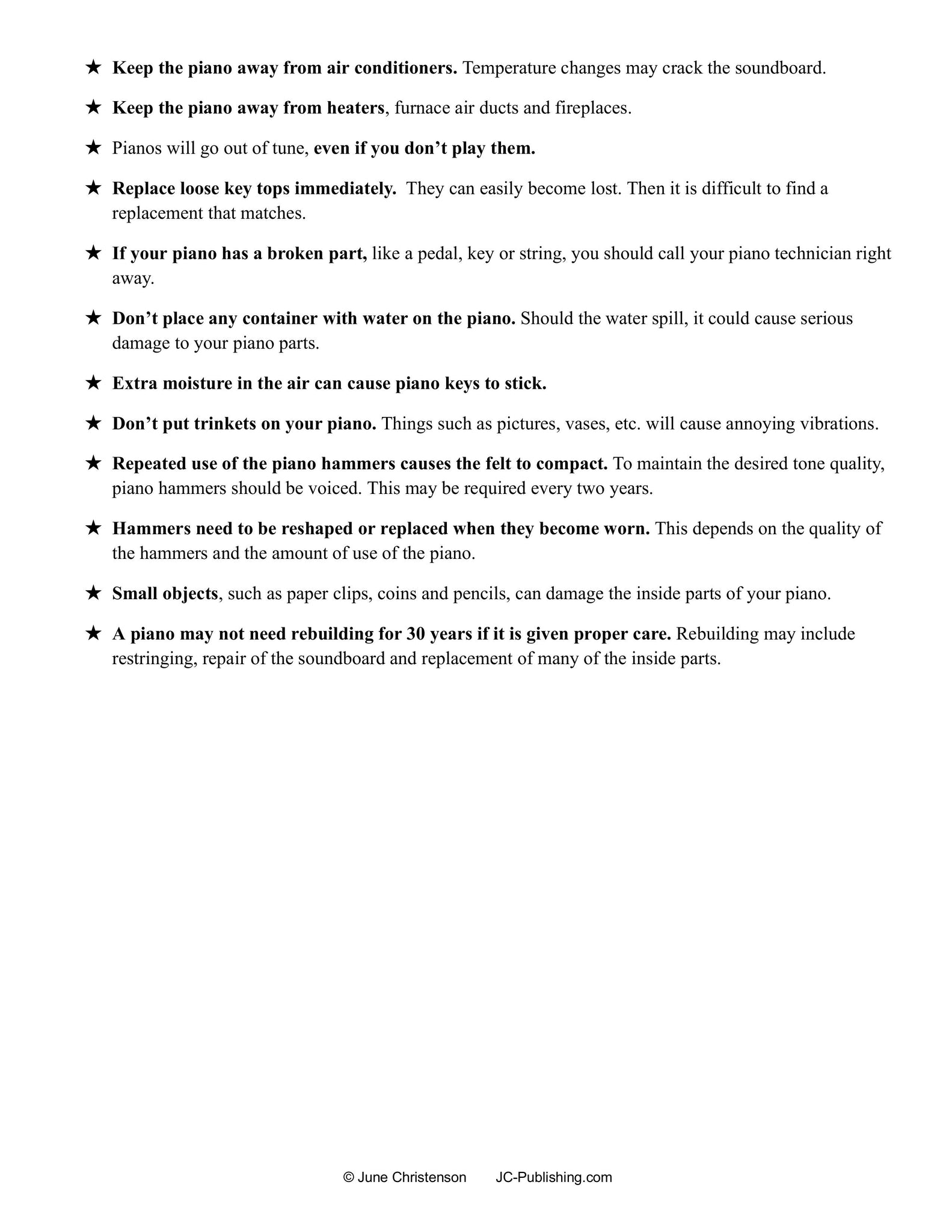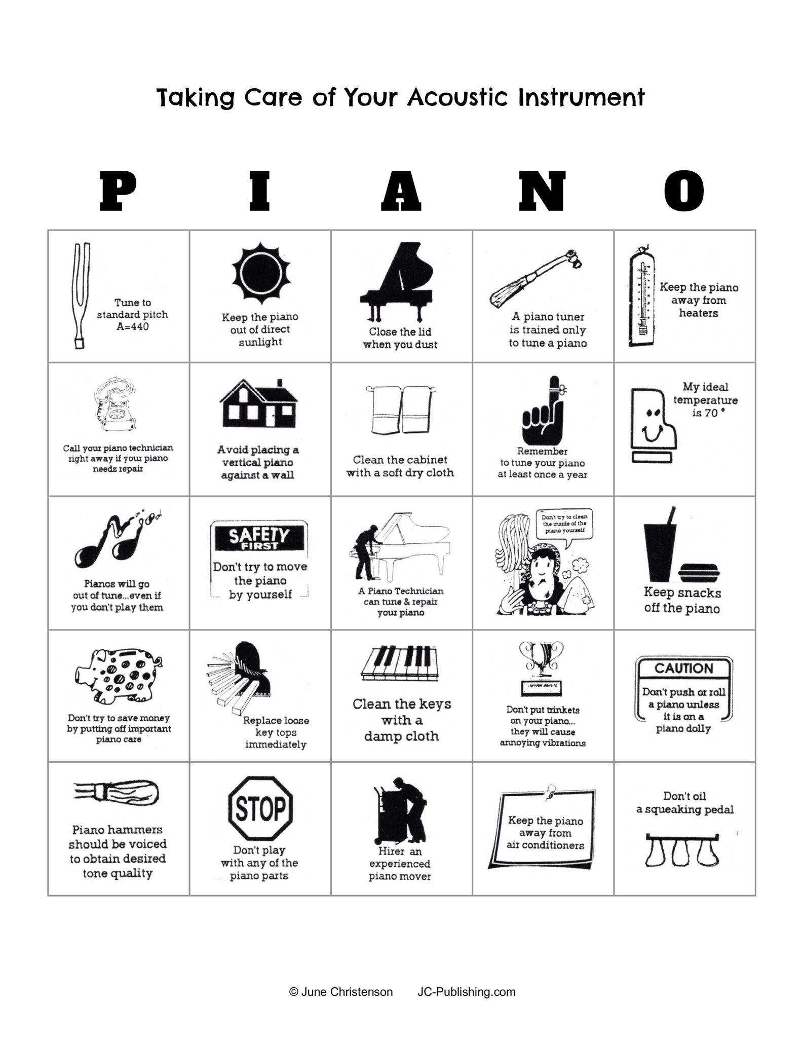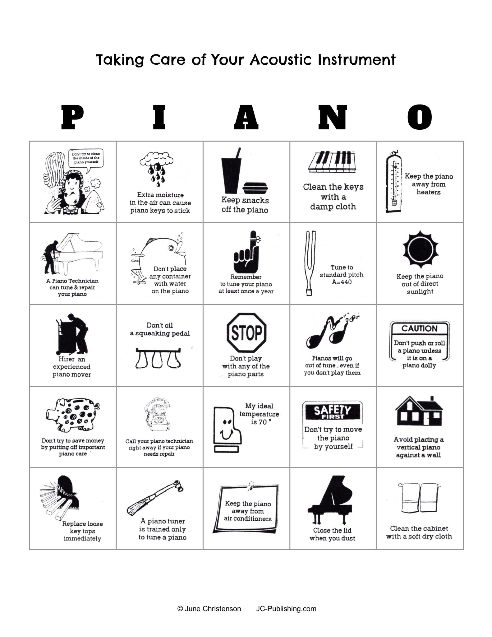 Piano Bingo - Taking Care of Your Acoustic Instrument