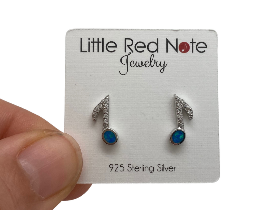 925 Sterling Silver Lab Opal Blue Eighth Note Earrings