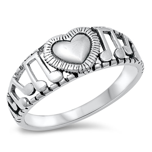 925 Sterling Heart and Music Notes Ring