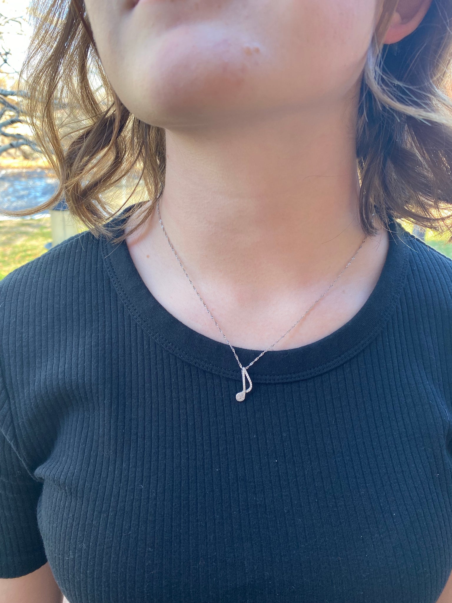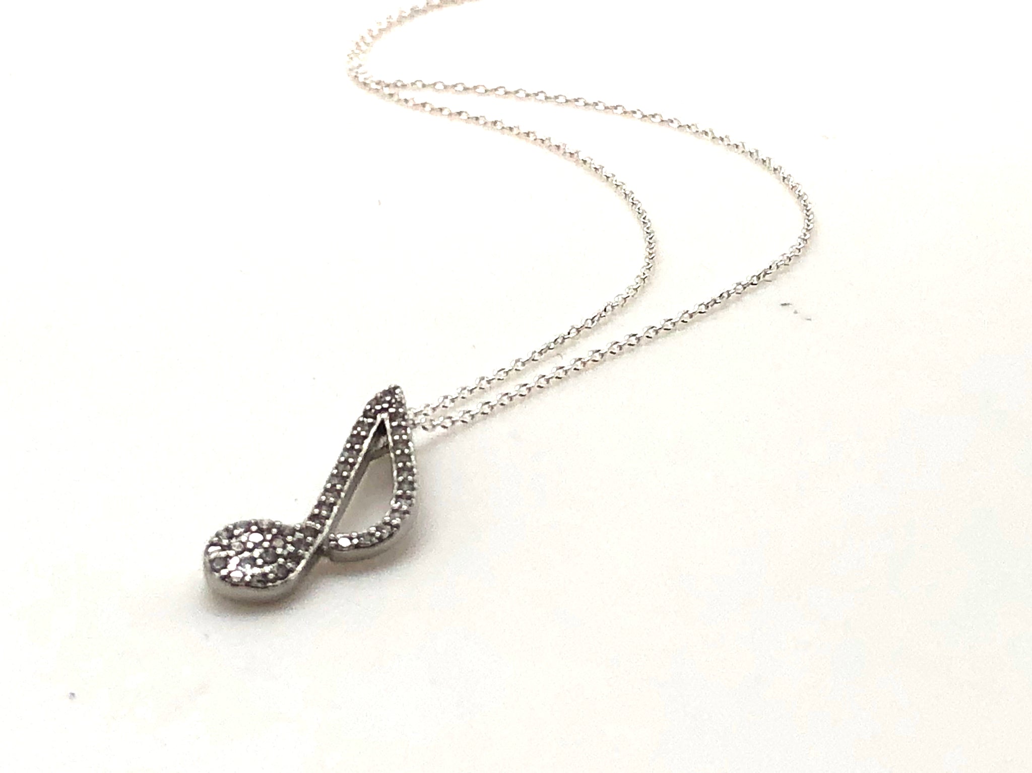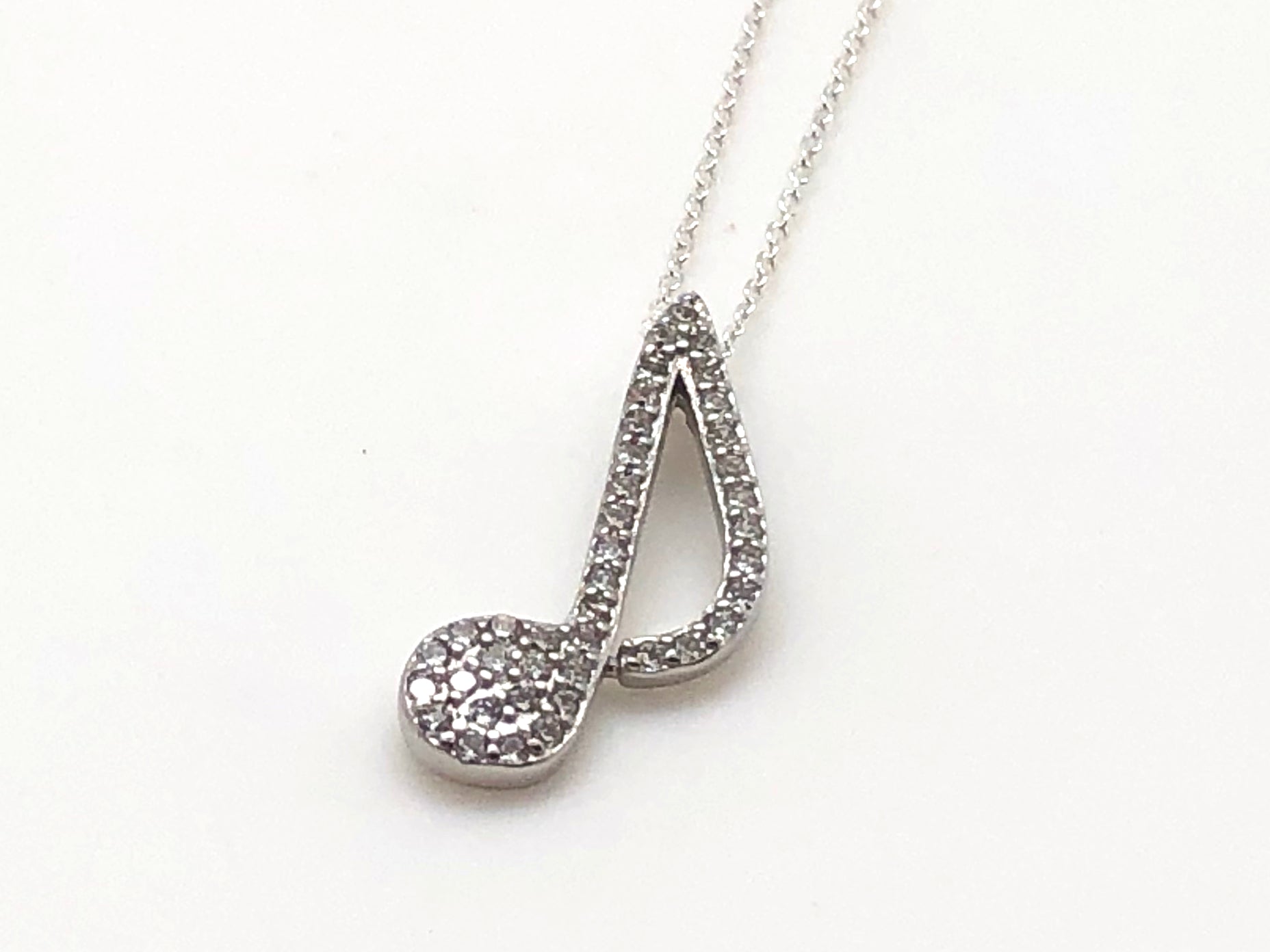 925 Sterling Silver 8th Note CZ Necklace