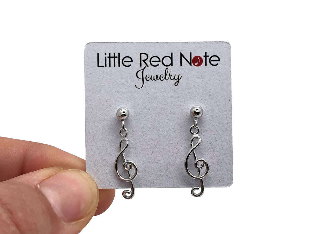 925 Sterling Silver Dangle Treble Clef Stud Earrings