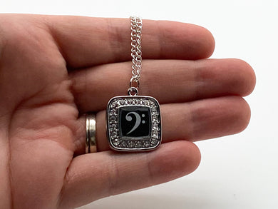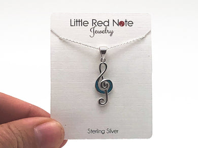 925 Sterling Silver with Lab Blue Opal Heart Treble Clef Necklace