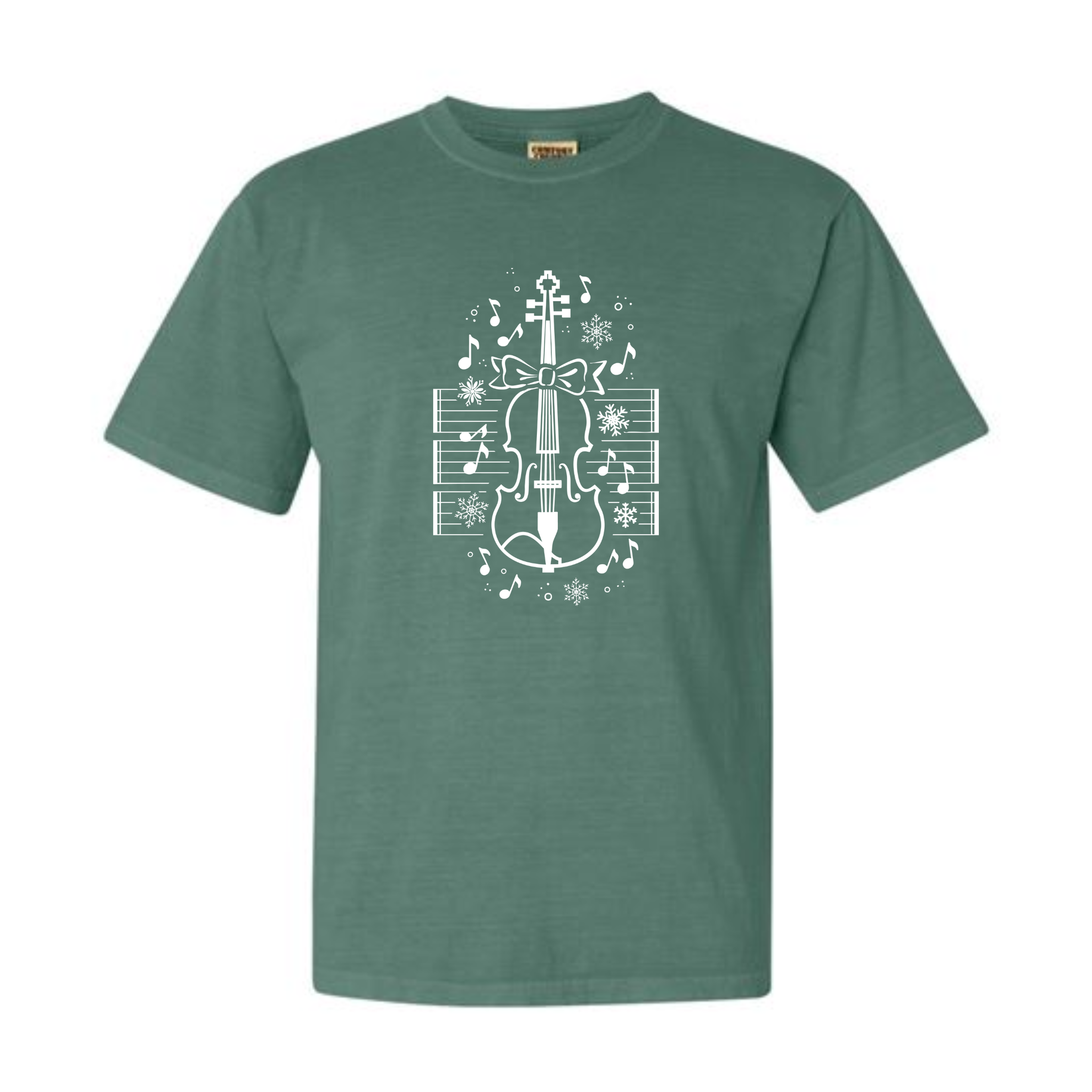 Bring some holiday cheer to your wardrobe with this cozy Comfort Colors tee! Featuring a charming violin graphic, this shirt is perfect for string players. Made with ultra-soft, garment-dyed cotton, it’s as comfortable as your favorite practice hoodie—and way more festive.