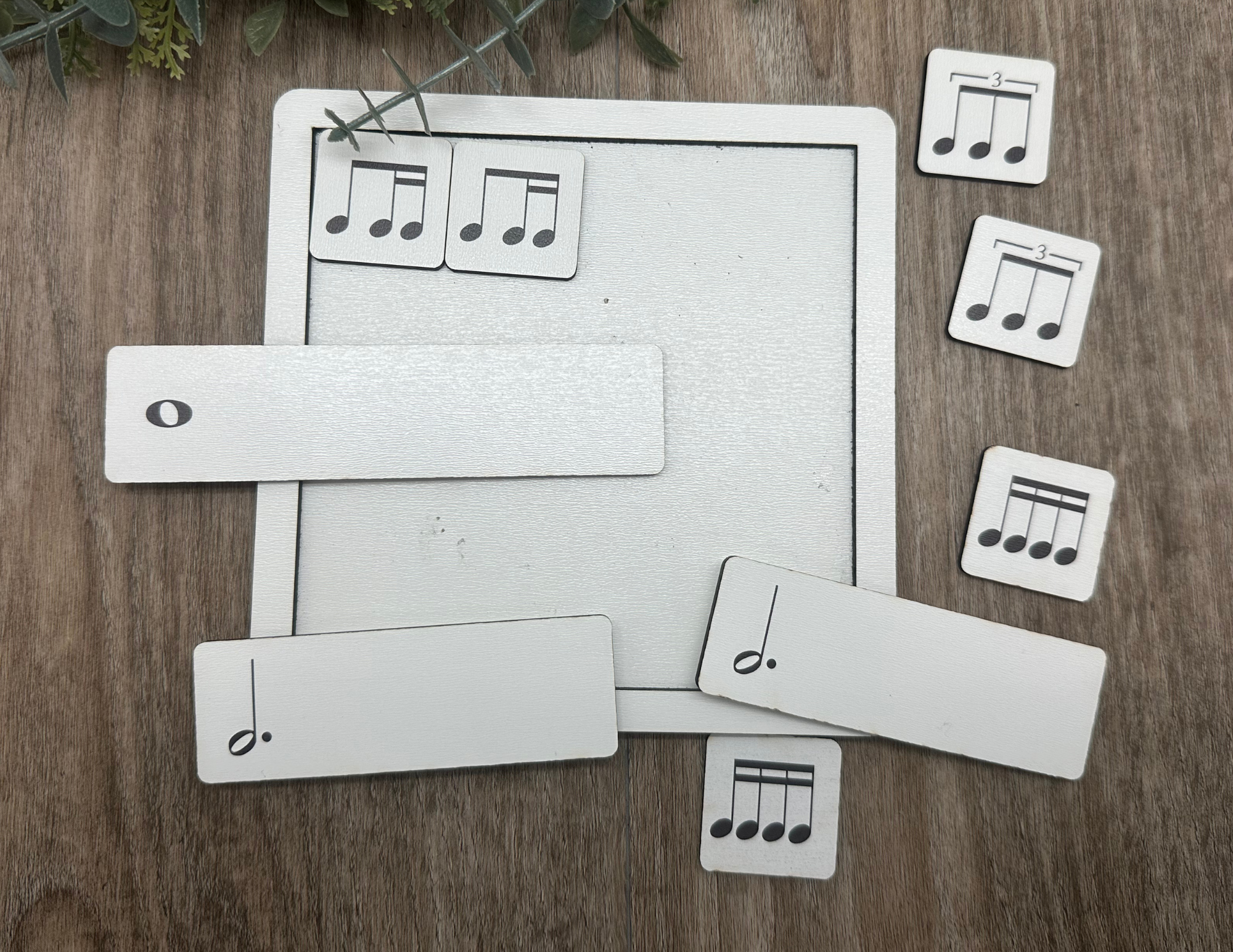 Because every piece fits anywhere on the board, students can rearrange the tiles to create their own rhythms, explore note values, and visually understand how beats fit together. It’s perfect for private lessons, classroom stations, at-home practice, or rhythm games.