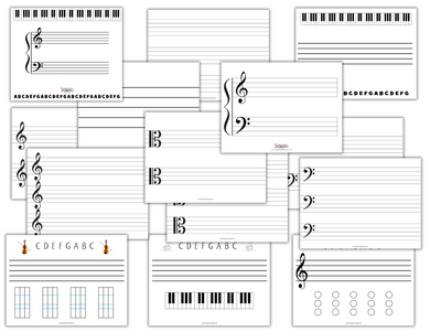 Foldable Music Staff Magnetic White Board Bundle - BLACK magnets